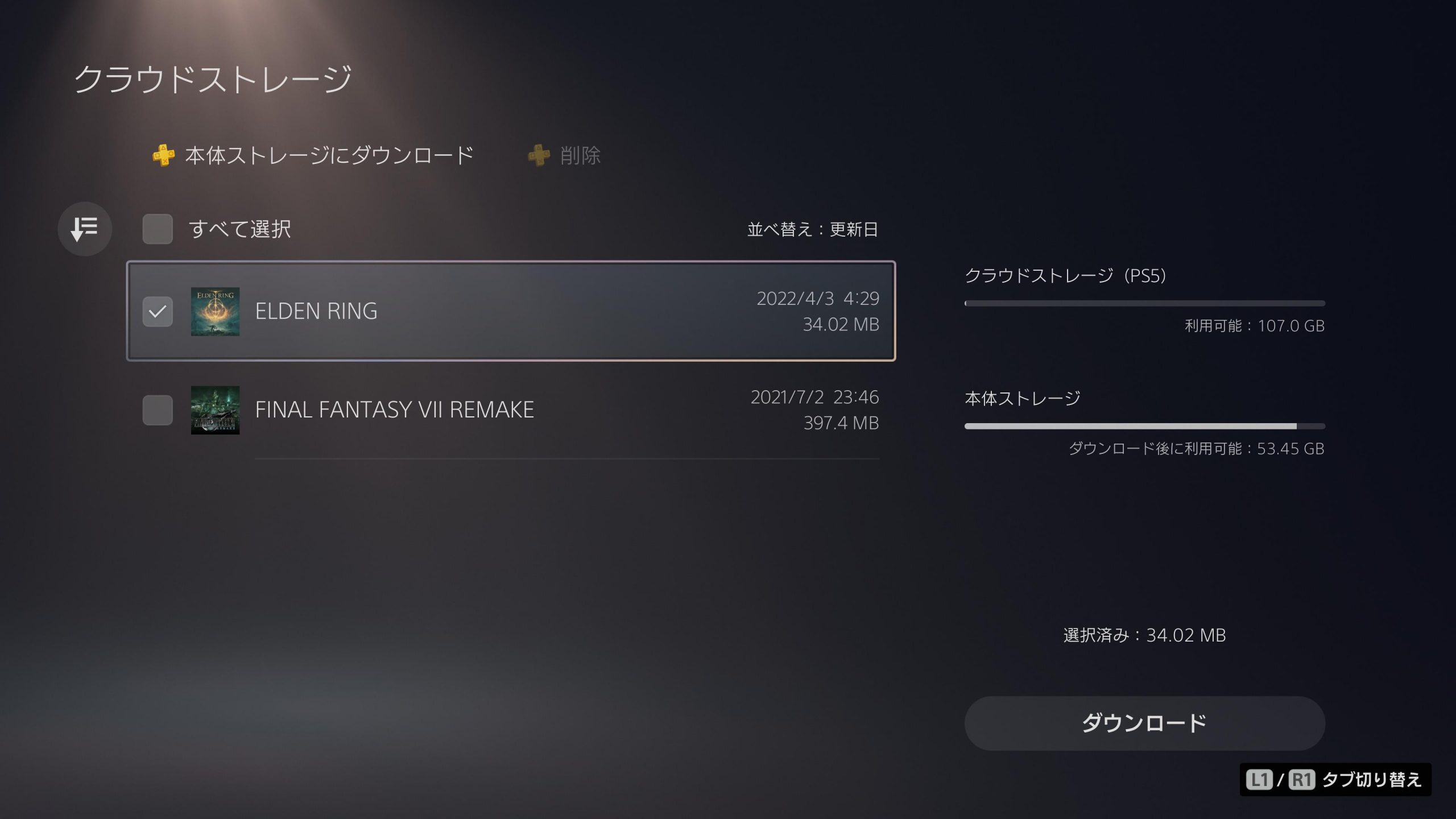 - クラウドストレージ⇒エルデンリングを選択肢ダウンロード
